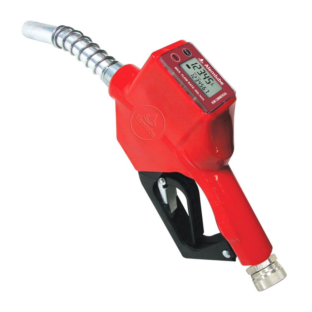 The 51037M auto shut off nozzle uniquely designed with a built in digital meter is suitable for dispensing diesel fuel and kerosene. The 51037M will automatically shut off when a tank is full. This innovative combination of nozzle and meter simplifies traditional separate nozzle and meter thinking and saves installation and usage time. The digital meter is powered by 2 x AAA batteries, displays a 5-digit resettable total and a 7-digit (non resettable) cumulative total function, and is accurate to ±1%. The LCD display can indicate several modes by pressing the menu button including level of battery charge, flow rate, calibration and units of dispensed fuel (litres, gallons, pints or quarts). And for peace of mind, spare parts for both nozzle and meter are readily available. Flow rates of up to 60 L/min are achievable within operating temperatures of -10ºC to 60ºC with an operating pressure of 7 to 50psi (0.5-3.5 bar). The 51037M comes complete with a 1” BSP(f) swivel and the outlet spout is 19mm (3/4”) in diameter.
