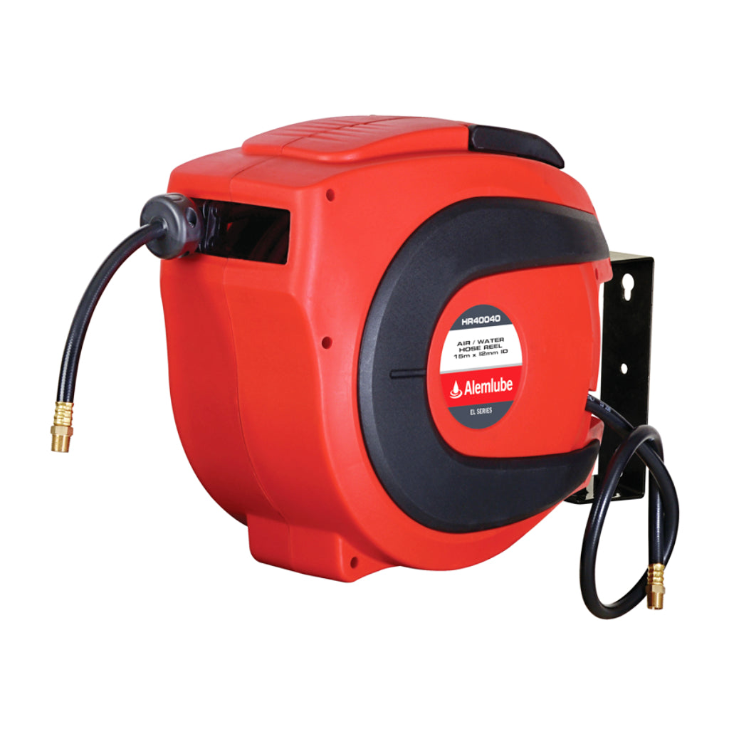 The Alemlube EL Series HR40040 Air / Water hose reels are quality hose handling, retrieval and storage systems each with crimped hose ends, integral carry handle and detachable mounting bracket enabling 180º hose reel rotation. Manufactured with high density impact resistant and UV stabilised polypropylene covers, the HR40040 PVC hose features a positive latching system that automatically locks the hose at the desired length and the heavy duty internal spring assembly easily retrieves the hose when partially or fully extended.