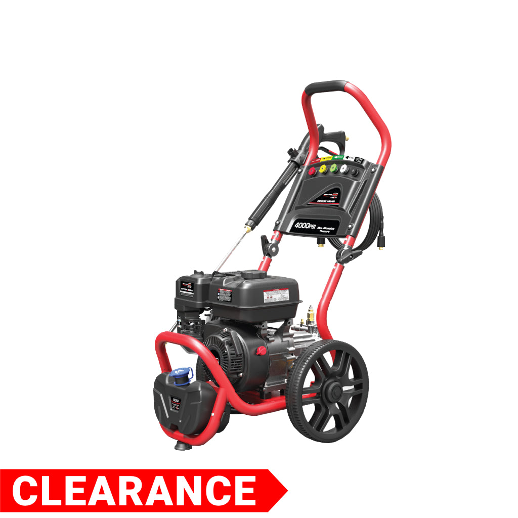 Simply switch to any of the included 5 Quick-Connect Nozzles and you can go from light cleaning to paint stripping or used for a variety of outside tasks such as cleaning backyard patios, decks, driveways, washing down patio furniture, vehicles and much more. Equipped with a durable powder-coated protective frame, foldable handles and large 12” never flat wheels ensure ease of mobility over even the roughest terrain. With a quality brass head pump and powerful 7.5HP engine the Millers Falls PW3200H-E guarantees a long life of trouble-free service. The built-in detergent tank can be refilled quickly and conveniently with just one simple movement to give your cleaning blast a boost!