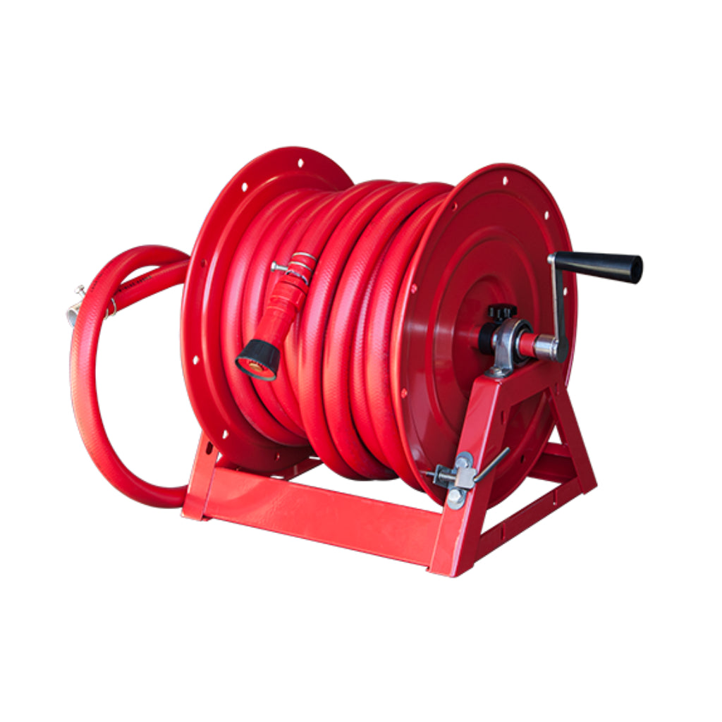 This is our 1″ hose reel, with 22m (75ft) hose. Engineered to maximise ease of use and durability. These hose reels are ideal for connecting to fire-fighting pumps. Special features includes; Hose EN694 – 2014 rating, stainless steel fittings, ball bearings, adjustable tension brake, position lock, heavy-duty steel construction and the internal components are made from high quality brass and stainless steel.
