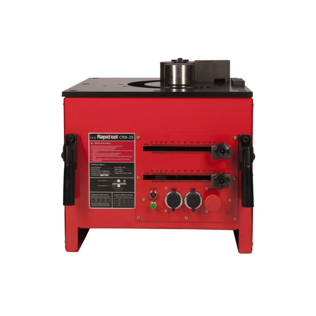 The RAPIDTOOL CRB-25 Industrial Rebar Bender is a powerful machine that has what it takes for your rebar bending operations. It offers an expansive bending capacity ranging from 6-25mm rebar and a bending angle ranging from 0-180°.