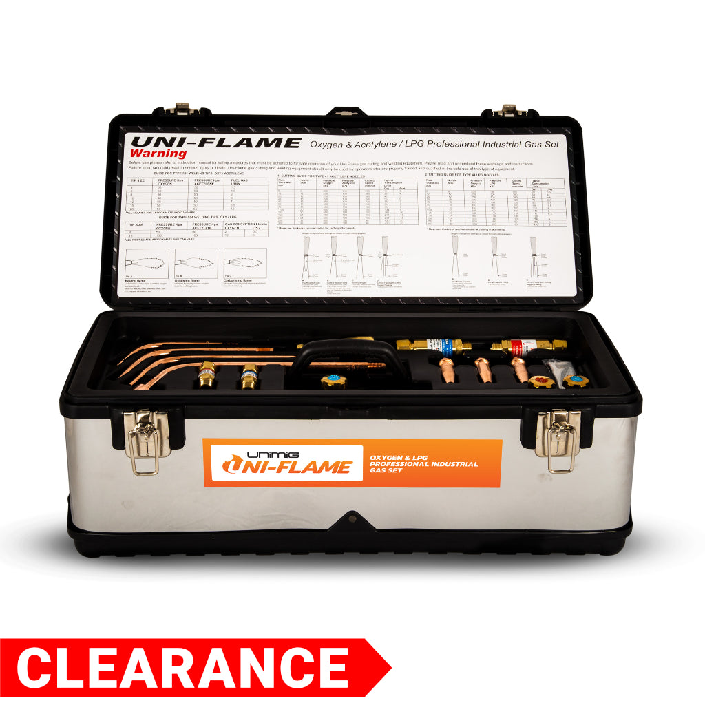 Unimig Oxygen and LPG Gas Kit includes everything you need for general purpose gas cutting and welding. Each kit comes in a carry-all tool box and has been engineered for safety and quality that you know you can rely on.