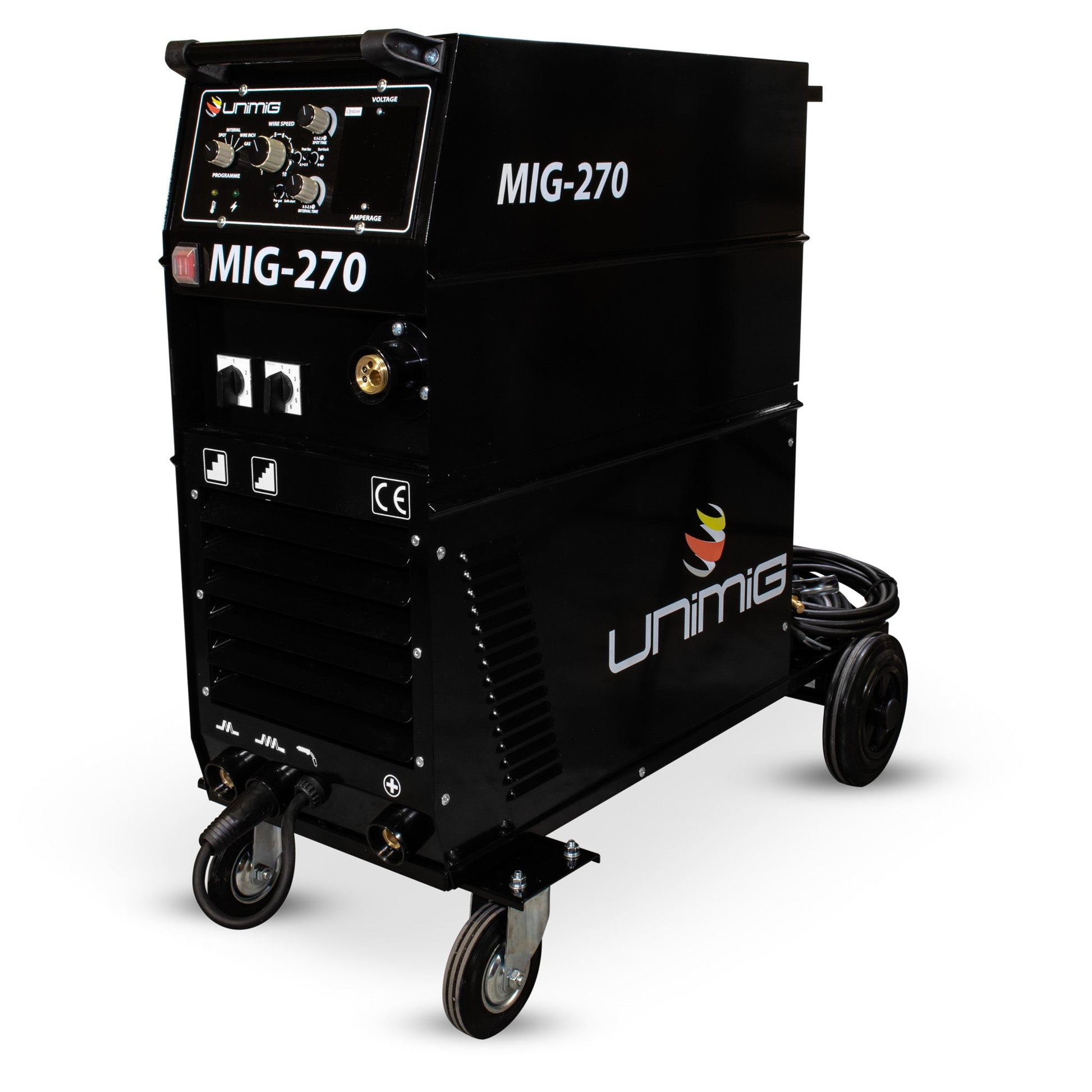 The WORKSHOP 270 Compact MIG Welder combines immense power with ultra-smooth arc characteristics. It has been designed for users who need a welder to do medium to heavy fabrication, as well as rural applications. It features 21 position switching, giving you the freedom to precisely dial in your welding settings, and a four geared roller drive unit for consistent smooth wire feeding. The high-quality copper-wound transformer with large cooling fans and motors maximises cooling and machine reliability.